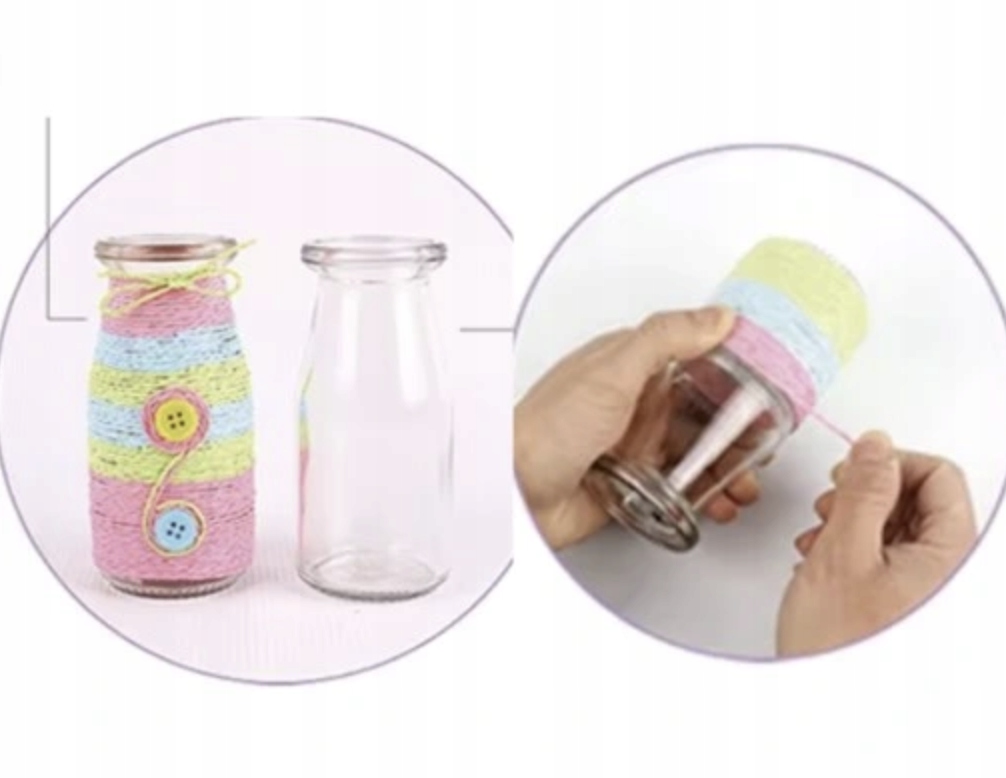 W pierwszym etapie oklej wazony taśmą klejącą i owiąż go kolorowymi sznureczkami