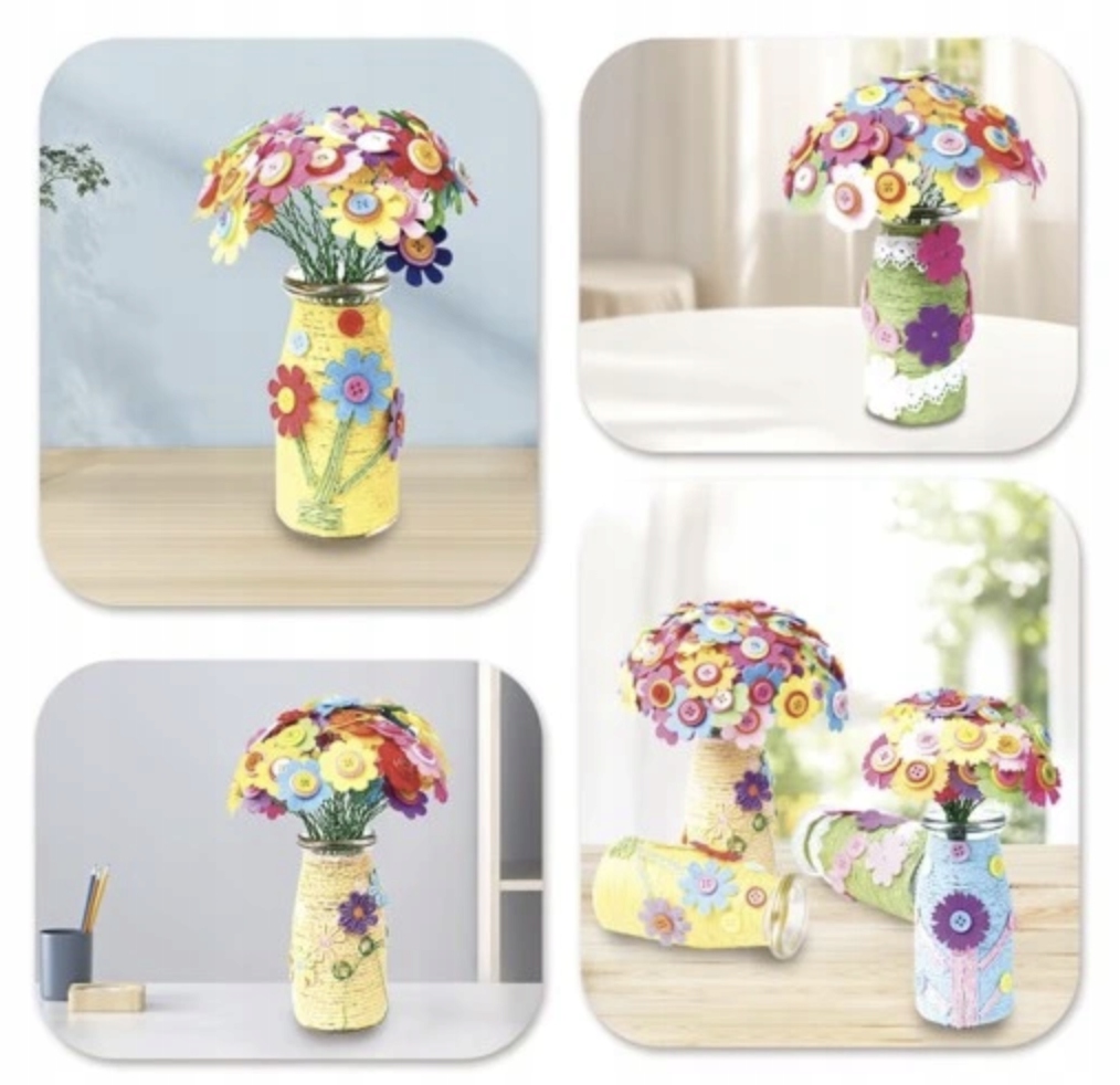 Kreatywny  Zestaw 2 Wazonów Kwiatki Bukiet Kwiatów w Wazonie Filc Guziki